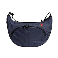 Has a generous strap, zip closure, inside zipper pocket on back wall, 5"(approx) zipped back pocket with a neoprene type lining good for a cell phone. There is a small pocket on 1 side of the bag along the side under the strap big enough for glasses or pens not big enough for a water bottle. The front zippered 1/2 moon pocket has 3 slash pocket and stiff divider with 2 other pockets and bright yellow interior for seeing things in the bag easily.