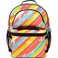 Bought this bag for my god-daughter's first day of kindergarten. It's a little large for a 5yr old, but nothing she can't grow into. Quicksilver quality, plenty of storage, with 1 main zipper compartment and an additional smaller (utensil) pocket. The best part is it comes with a detachable lunch box with sandwich Tupperware holder and a Roxy branded water bottle. Good deal for the +$40 spent