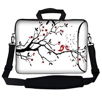 There is even a bonus pocket on the front. Straps are very comfortable. One drawback for me, it has a very strong chemical smell, so I have put it outside to air out but it is still there. Maybe just this kind of material gives off this odor? Otherwise it is perfect. Great price, shipping was a little slow but I am still satisfied.This is very nice and the shoulder strap is very comfortable. I was unhappy that the back side of the ink print was blurred as if the ink bled and smeared. At least the front looks nice. Front compartment is functional for a little extra space.It's light weight yet it protects the laptop well. I take it everywhere with me. It's a great buy. My laptop loves it.It's a very snug fit and I almost didn't buy it because I didn't think I would be taking my new laptop anywhere. I take it everywhere! and it's always ready to go. plus my mouse and charger fit in the side zip up pouch