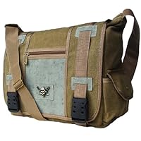 Buy Military Inspired Canvas Crossbody Messenger Bag Laptop Bookbag Khaki Green Now
