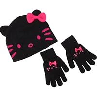 Loungefly Hello Kitty Black/Pink Face Beanie & Glove Set