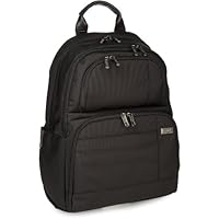 Bought to replace 10 year companion backpack that died. Of all my research this was the only bag that had all required features: Non-zippered pocket for paper or iPad or magazine, slide over roller bag handle, water bottle pocket big enough for large bottles sold in airports and lots of space. I had to insert a thin board the exact size of a car lisence plate into the bottom to make it stand up on its own, but that works perfectly. It is everything I wanted and has an inderstated solid black professional appearance. Highly recommend.