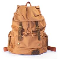 Buy BROWN Canvas Rucksack Backpack School Bag Camping Bag Genuine Leather Straps Now