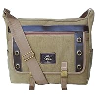 Buy Classic Military Style Messenger Bag Khaki Green Canvas Laptop Case Bookbag Now
